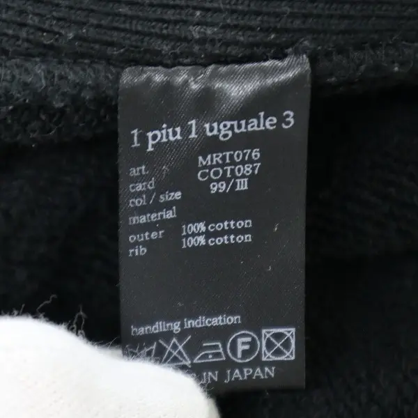 1PIU1UGUALE3 プルオーバー パーカー フーディ 綿100% サイズⅢ 3 ブラックの買取金額