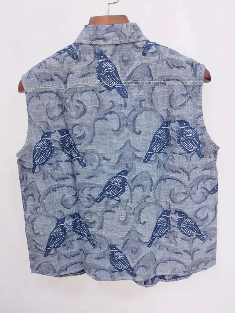45R フォーティファイブアール ノースリーブ デニムジャガード 3 ブルー系 鳥 レディース