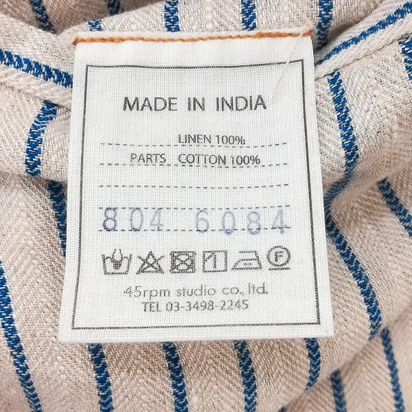 45R フォーティファイブアール インド リネンツイル 908 ポッポパンツ グレー×ブルー ストライプ 麻100%の買取金額