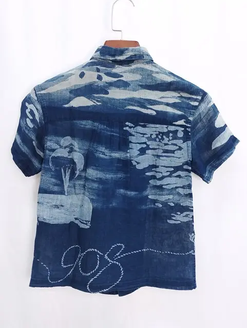 Umii908 半袖シャツ 1 インディゴ系 総柄 灯台 海 クジラ 綿100% レディースの買取金額