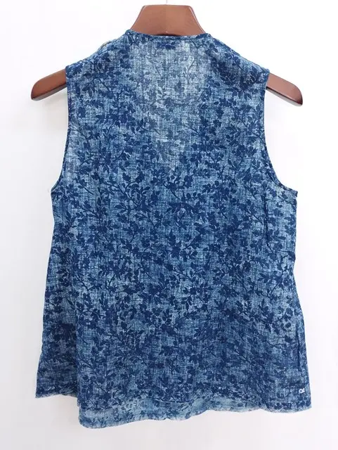 45R フォーティファイブアール ノースリーブ ブラウス 3 インディゴ コットン100% フリル 柄 レディース