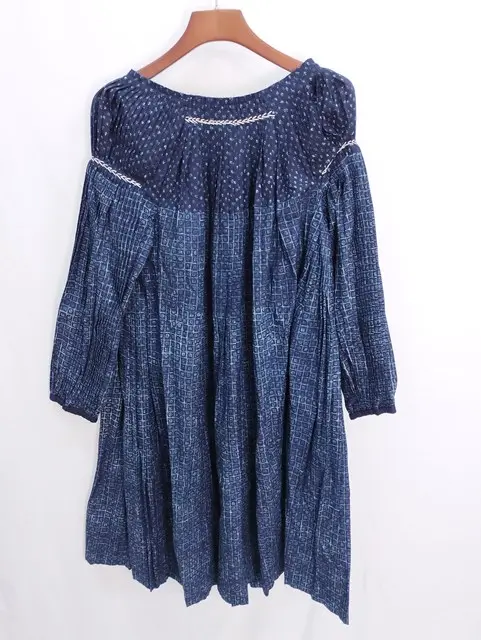 45R フォーティファイブアール パッチワークのプリーツドレス 0 インディゴ ワンピース