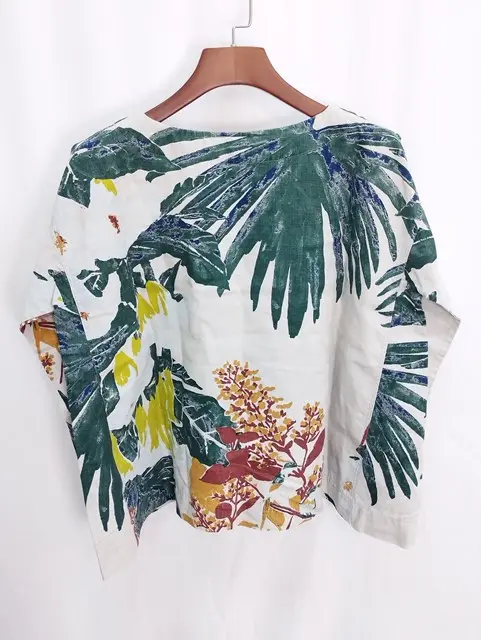 45R フォーティファイブアール リネン ブラウス 0 総柄 アロハ柄 カットソー レディース