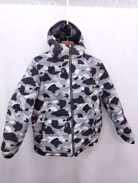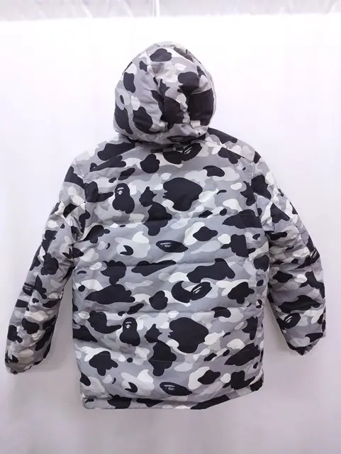 A BATHING APE リバーシブルダウンジャケット ブラック グレー系 M カモ柄の買取金額