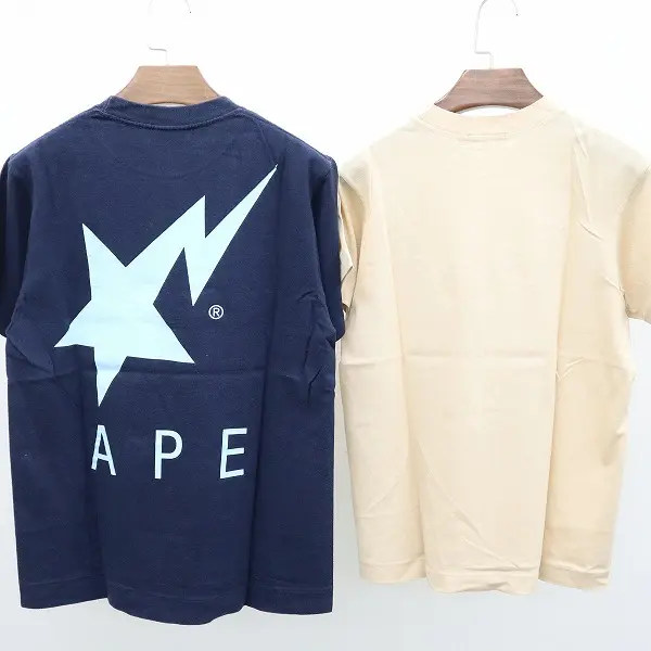 A BATHING APE アベイシングエイプ Tシャツ S 計2点 ベージュ ネイビー 半袖 日本製 クルーネックの買取金額