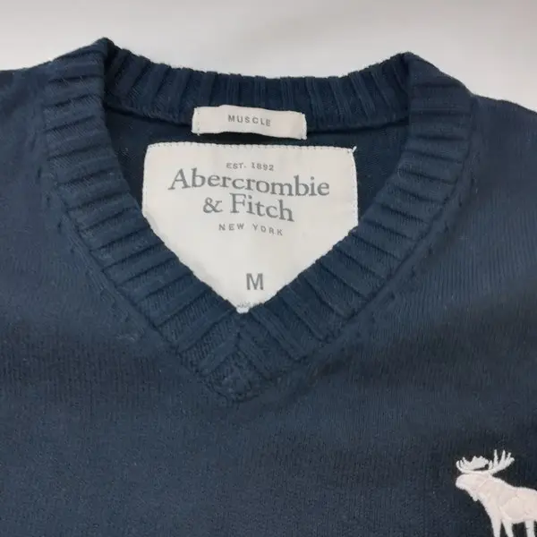 Abercrombie&Fitch アバクロ Vネックセーター M ネイビー プルオーバーニット ヘラジカ刺繍 薄手の買取金額