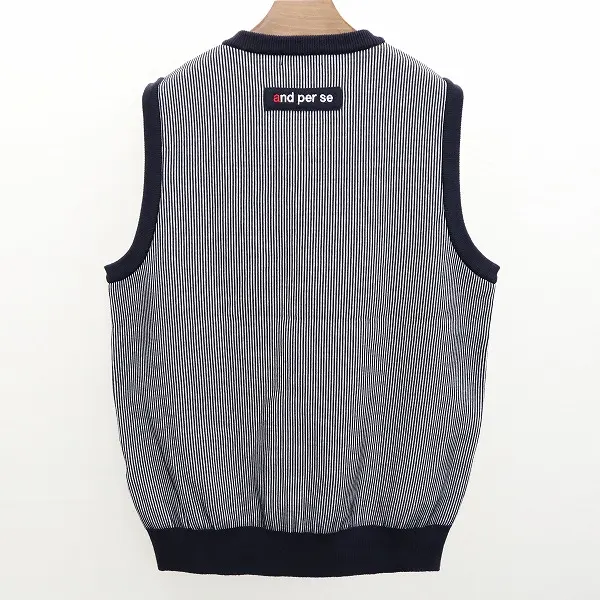 and per se アンパスィ Vネック ニット ベスト L ネイビー系 アクリル ポリエステル