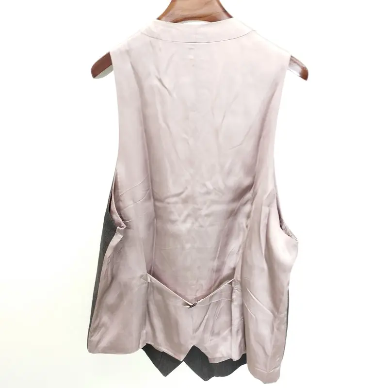 ANN DEMEULEMEESTER アンドゥムルメステール ベスト XS こげ茶×ピンク系 ジレ ストライプ 綿 麻 毛