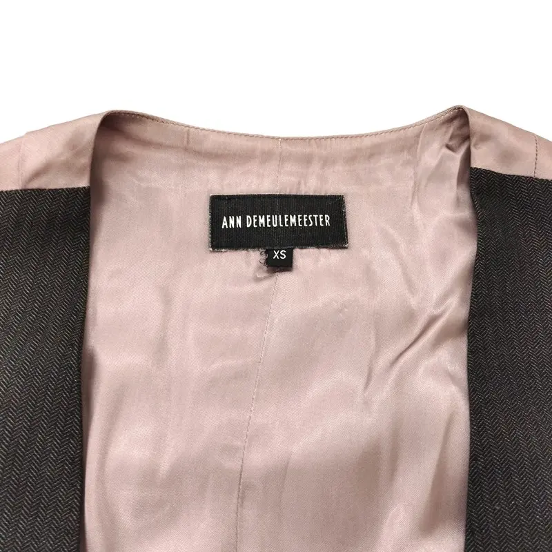 ANN DEMEULEMEESTER アンドゥムルメステール ベスト XS こげ茶×ピンク系 ジレ ストライプ 綿 麻 毛の買取金額