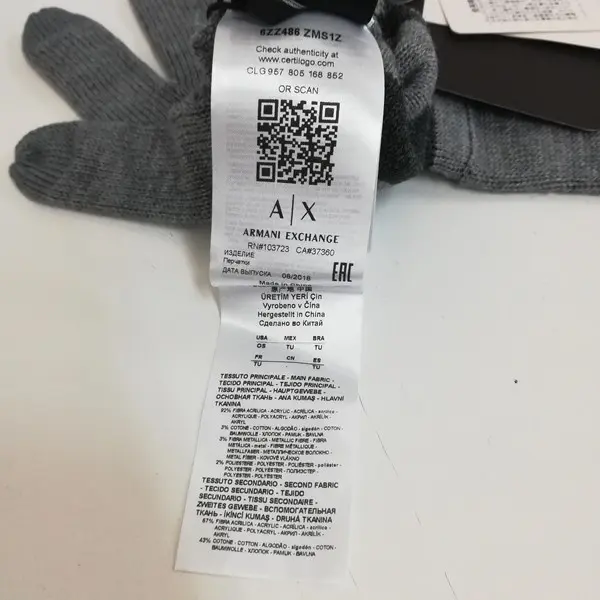 ARMANI EXCHANGE アルマーニエクスチェンジ ニットグローブ TU グレー 手袋