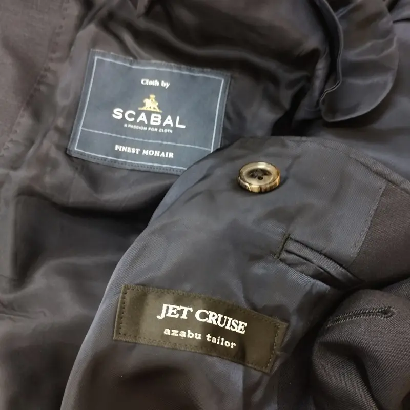 azabu tailor 麻布テーラー JET CRUISE 段返り3B 3ピーススーツ 048A 050A 082 ネイビー SCABAL 無地 3Bスーツの買取金額