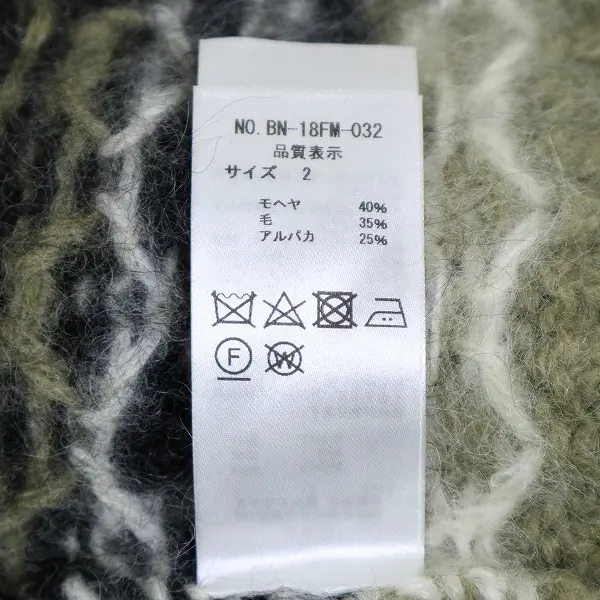 BATONER バトナー MOHAIR NORDIC モヘヤ ノルディック クルーネック セーター size2 日本製の買取金額