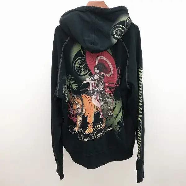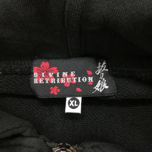 抜刀娘 スウェットパーカー XL ブラック 長袖 フード 和柄 プリント 刺繍 綿100の買取金額