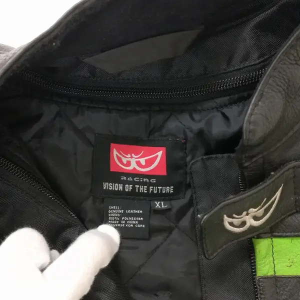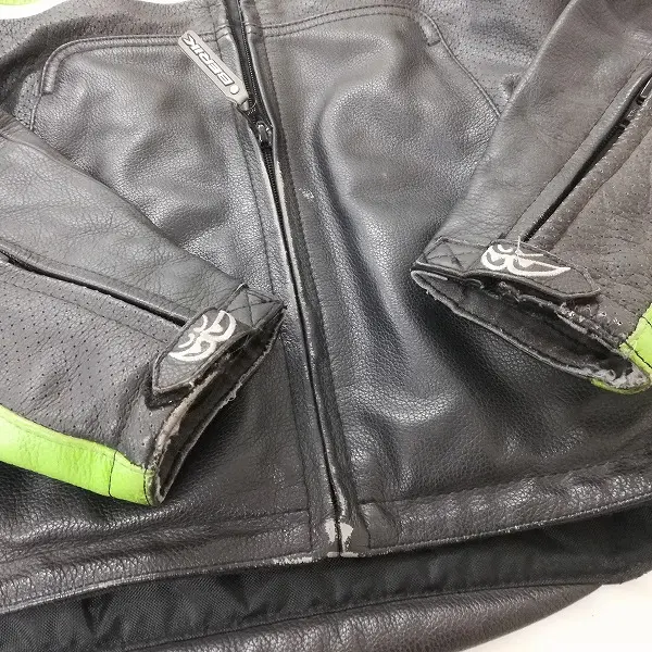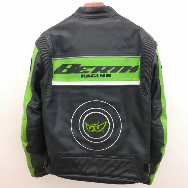 BERIK ベリック レザージャケット XL ブラック×グリーン×ホワイト 長袖 ロゴ刺繍 ジップアップ 革の買取金額