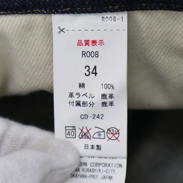 BIG JOHN ビッグジョン レア デニムパンツ R008 34 インディゴ ジーンズ 綿100 日本製の買取金額