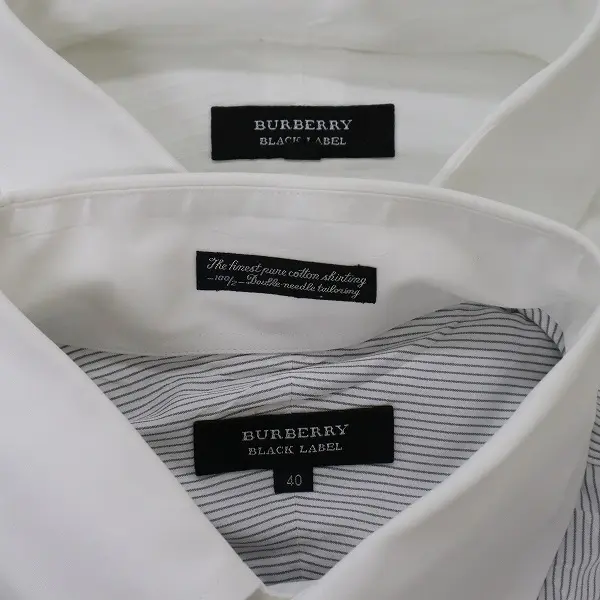 BURBERRY BLACK LABEL ロゴ刺繍 ワイシャツ 40 ホワイト グレー系 長袖 ストライプ柄の買取金額