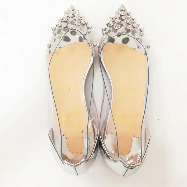 Christian Louboutin クリスチャンルブタン スタッズ フラットシューズ 37 クリア×シルバー レディースの買取金額