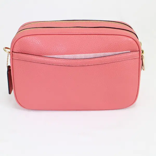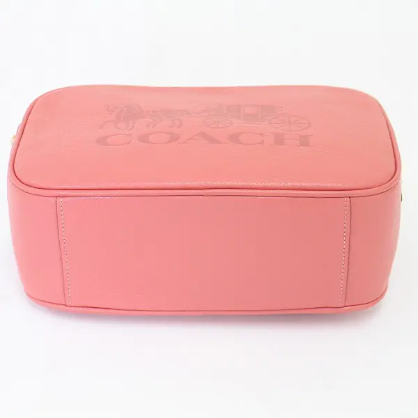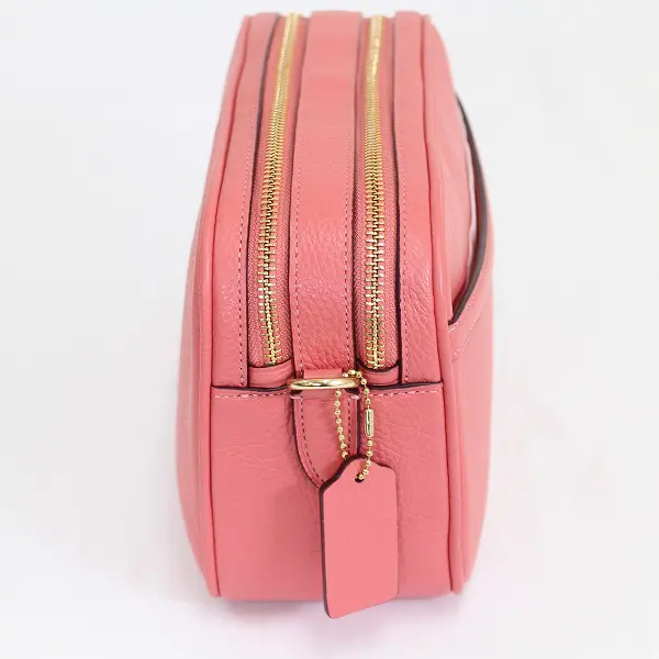 COACH コーチ ダブルジップ ショルダー バッグ レザー 2Way ピンク レディース 型押し カバン