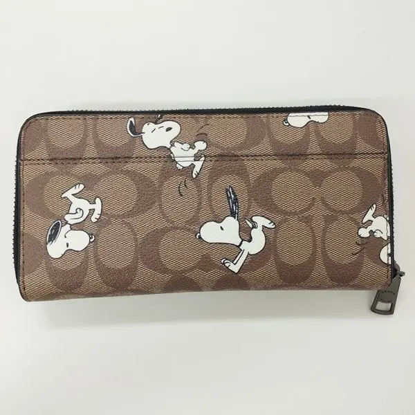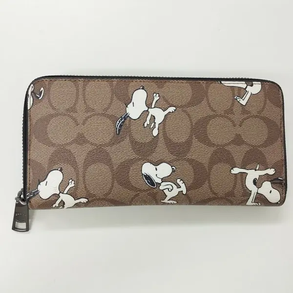 COACH コーチ 長財布 ブラウン系 スヌーピー ラウンドファスナー PEANUTS