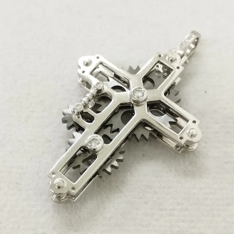 E-NO'S イーノス K18WG 歯車ギアクロス ペンダント チョーカー シルバー 計2点