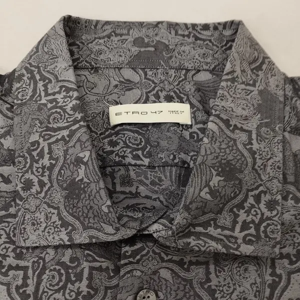 ETRO エトロ 長袖シャツ 47 グレー系 総柄 綿100 イタリア製