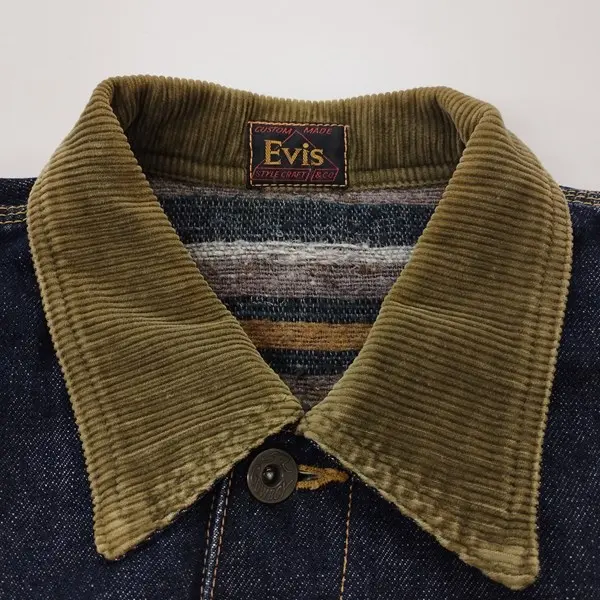 EVISU エヴィス デニムジャケット インディゴ 裏地ブランケット 襟コーデュロイ