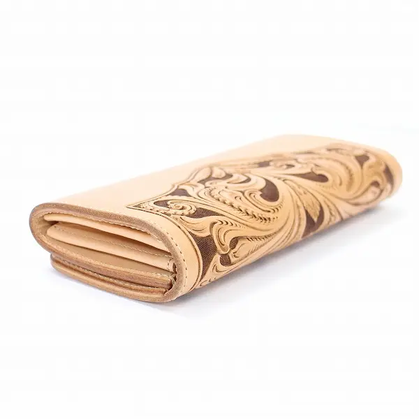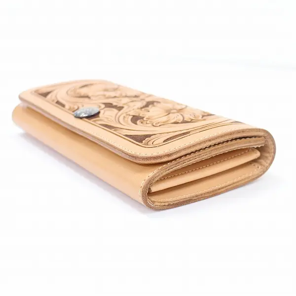 FUNNY ファニー レザー ロングウォレット 長財布 牛革 ベージュ 小銭入れ 花 カービング