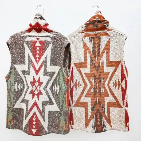 goa ショールカラーベスト F マルチカラー ボタンダウン ノースリーブニット ネイティブ柄 レディース