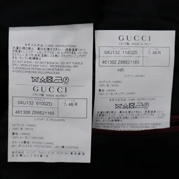 GUCCI グッチ スーツ上下セット 7-46R ブラック 裏地GG サイドベンツ 2Bの買取金額