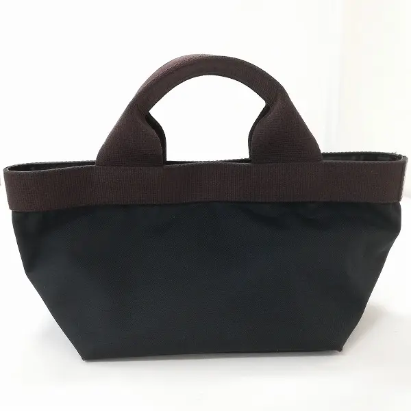 Herve chapelier エルベシャプリエ コーデュラナイロン 舟型 トート ハンドバッグ S ブラック×ブラウン