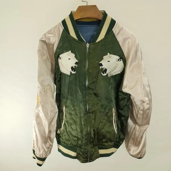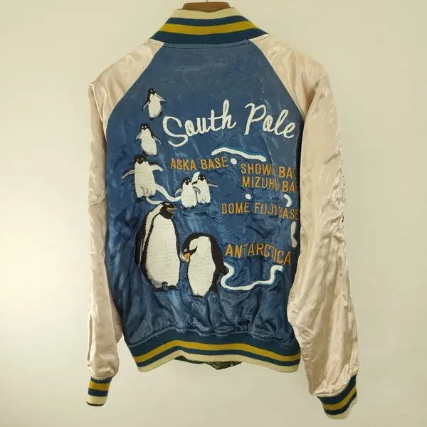 HOUSTON ヒューストン リバーシブルスカジャン M ブルー系 グリーン系 刺繍 ペンギン しろくま ジップアップの買取金額