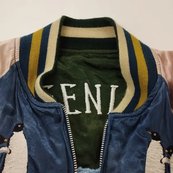 HOUSTON ヒューストン リバーシブルスカジャン M ブルー系 グリーン系 刺繍 ペンギン しろくま ジップアップ