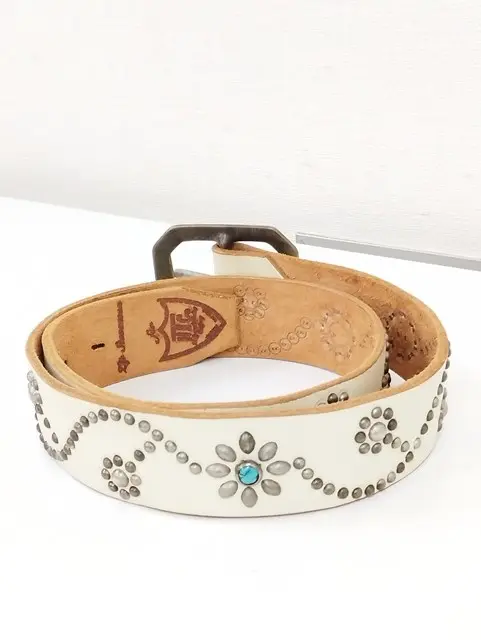 HTC エイチティーシー ベルト 34 アイボリー 革 スタッズ フラワー