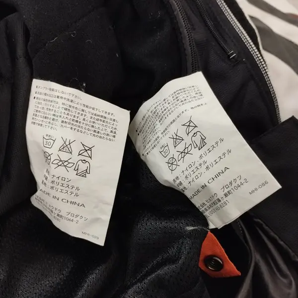 ライナー裏地に繊維の付着、生地の表面から繊維が出てきています。