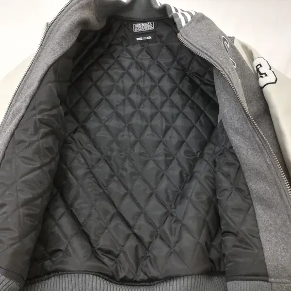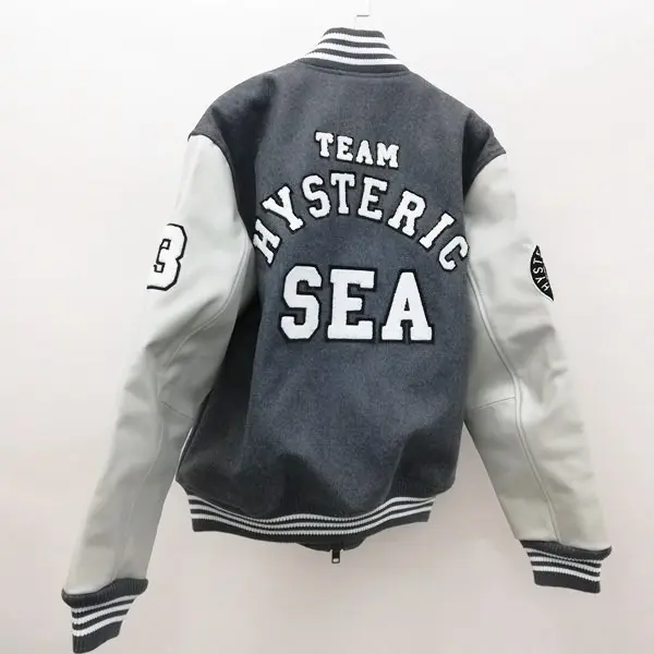 HYSTERIC GLAMOUR × WIND AND SEA スタジアムジャンパー L グレー スタジャン ウール 中綿 袖レザー
