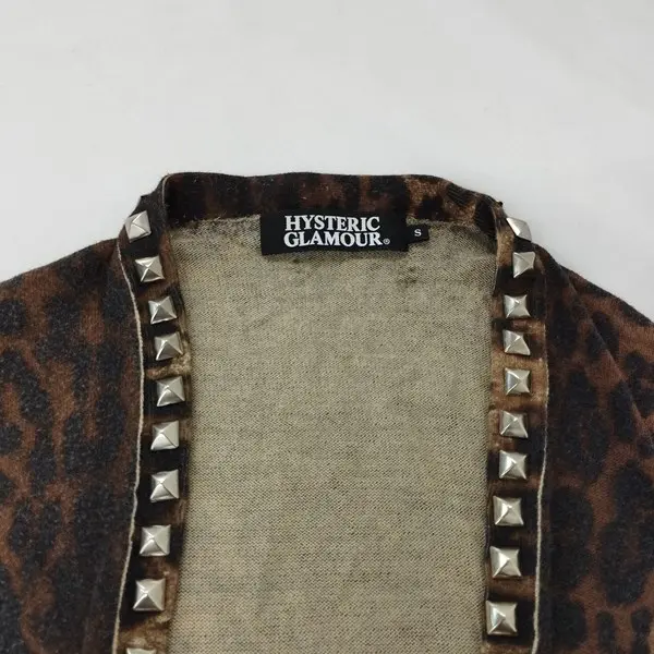 HYSTERIC GLAMOUR ヒョウ柄スタッズカーディガン S ブラウン系 0223ND12 長袖 綿100 レオパード