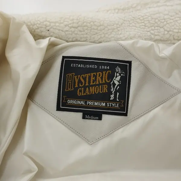 HYSTERIC GLAMOUR ヒステリックグラマー レザーダウンジャケット M ホワイト 羊革 ロゴ刺繍 フェザー