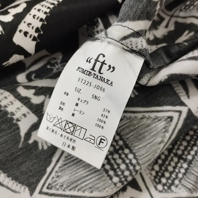 JANTJE_ONTEMBAAR×FUMIE=TANAKA 半袖シャツ SNG ブラック×ホワイト FT22S-JO06 日本製 キュプラ 綿の買取金額