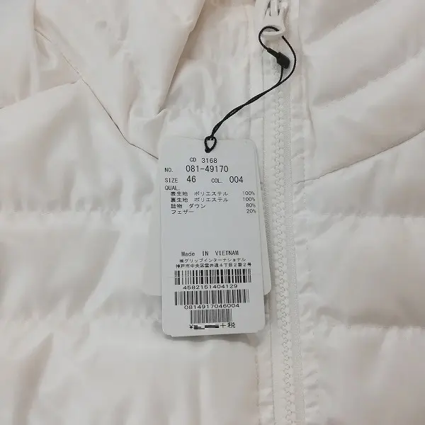 J.LINDBERG Jリンドバーグ ダウンベスト 46 ホワイト フェザー 081-49170 ジップアップの買取金額