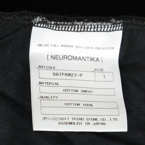 JULIUS ユリウス NEU ROMANTIKA スウェットパンツ バックプリント size1 ブラック 17FW