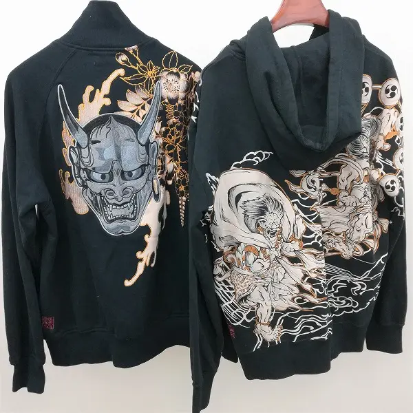 絡繰魂 パーカー スウェットジャケット XL ブラック 和柄 刺繍 プリント 綿100の買取金額