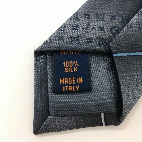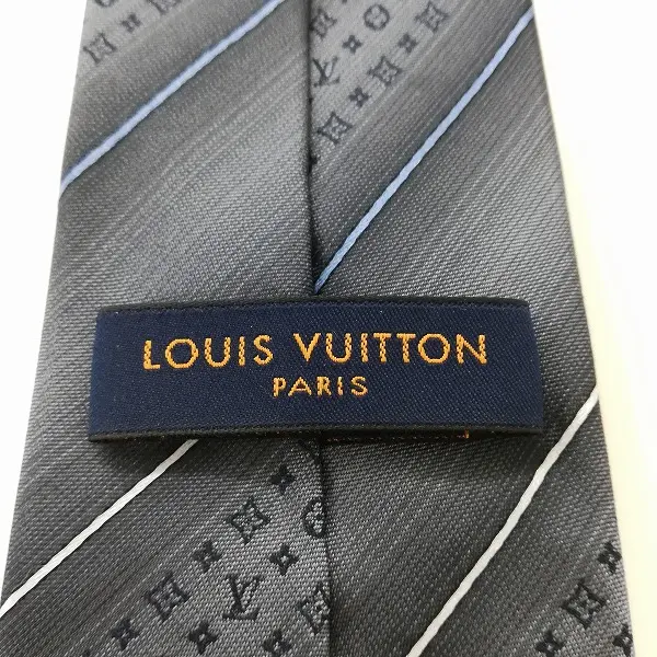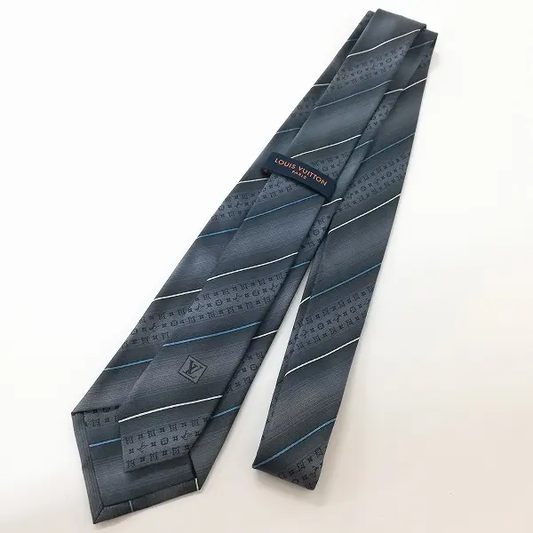 LOUIS VUITTON ネクタイ ロゴグラム レジメンタルストライプ イタリア製 シルク100 グレー×ブルー×ホワイトの買取金額