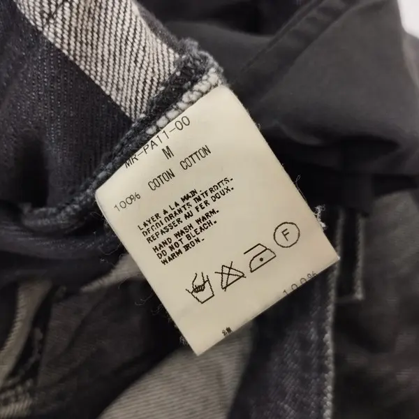 品質表示タグに汚れ、変色が見られます。