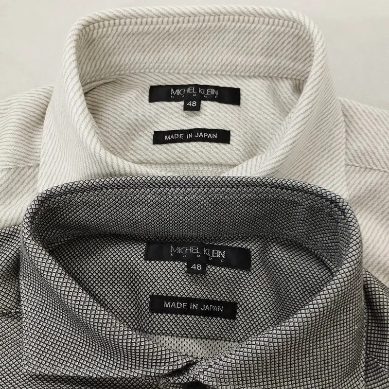 MICHEL KLEIN homme 長袖シャツ 48 グレー系 ホワイト系 日本製 ポリエステル コットン 計2点