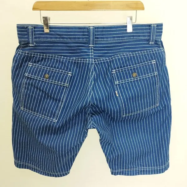 桃太郎ジーンズ ウォバッシュ ストライプ ショートパンツ W36 インディゴ 02-038 綿100 日本製