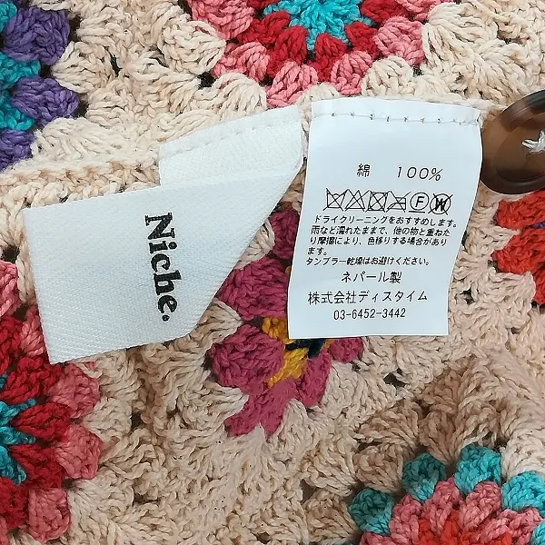 Niche. ニッチ INDUSTRIAL HINDUSTAN CROCHET CARDIGAN カーディガン マルチカラー 長袖 綿100% ネパール製の買取金額