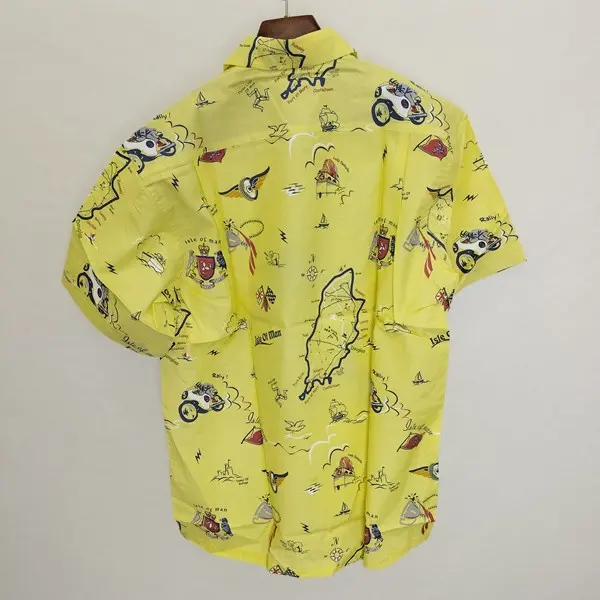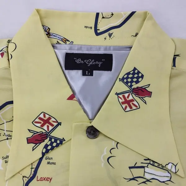 Or Glory オアグローリー ボタンダウンシャツ L イエロー Isle of Man 半袖 日本製 総柄