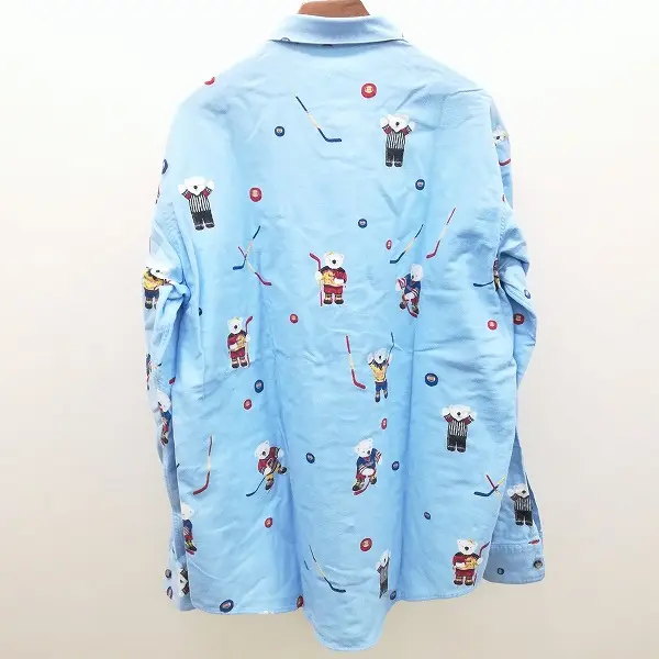Papas パパス 長袖シャツ M (48) ライトブルー 日本製 ボタンダウン 総柄 クマ アイスホッケー 綿100の買取金額