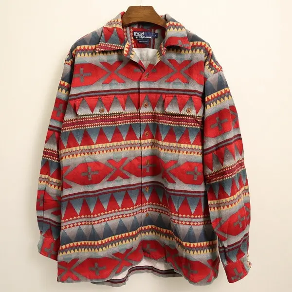 Polo Ralph Lauren 90s シャツ M 2点 開襟フランネル ネイティブ柄 スポーツマン プリント 切替の買取金額