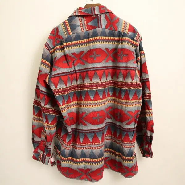 Polo Ralph Lauren 90s シャツ M 2点 開襟フランネル ネイティブ柄 スポーツマン プリント 切替